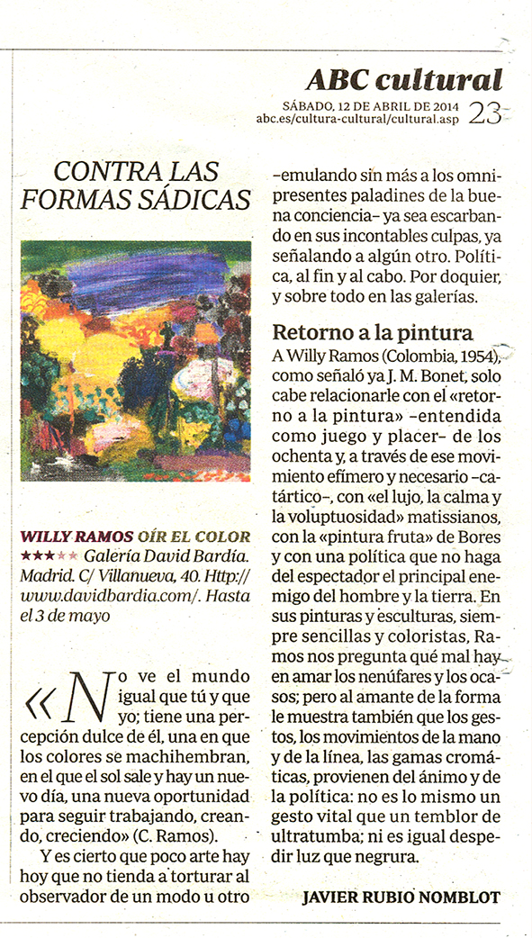 Crítica de ABC sobre la obra Willy Ramos en la Galería David Bardía.